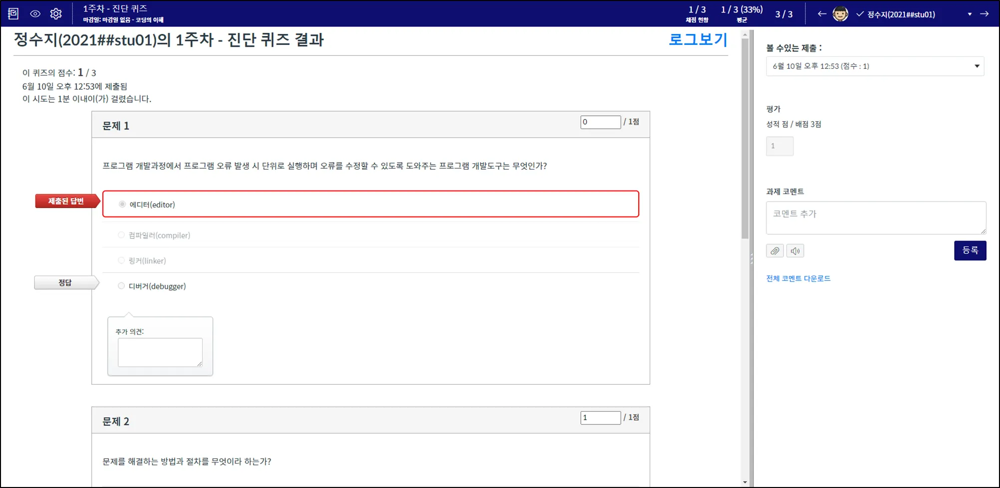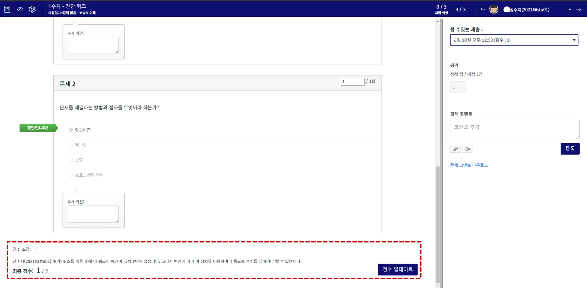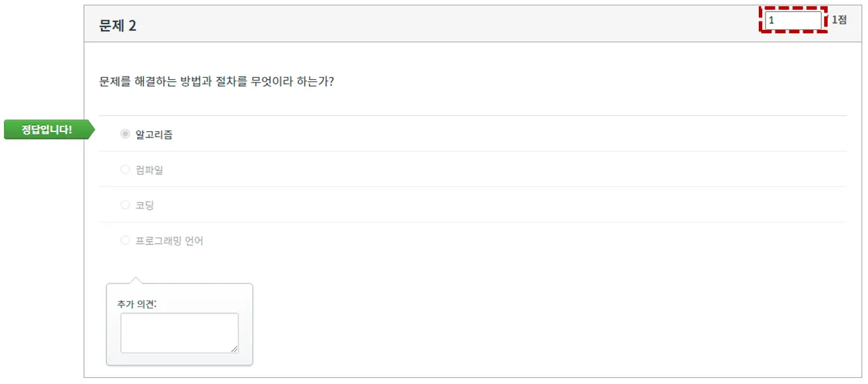 점수 입력란에 해당 문제의 평가 점수를 입력합니다.