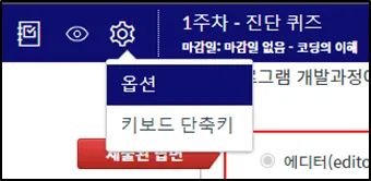SpeedGrader 화면 왼쪽 위에 위치한 톱니바퀴 아이콘을 눌러 '옵션'을 누릅니다.